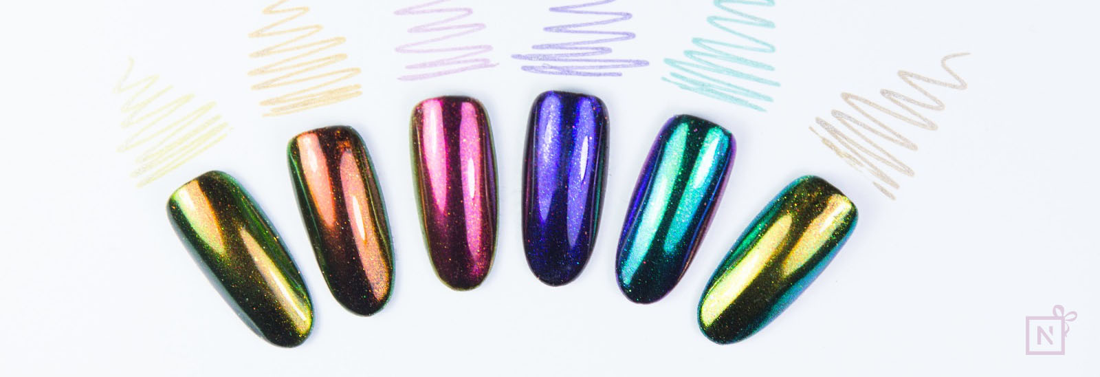 De techniek van het chrome nagels aanbrengen, kun je ook toepassen op andere pigmenten. Daarom laten wij je in de video maar liefst drie verschillende toepassingen zien, waarbij we ook gebruikmaken van het holografisch pigment én het aurora pigment.