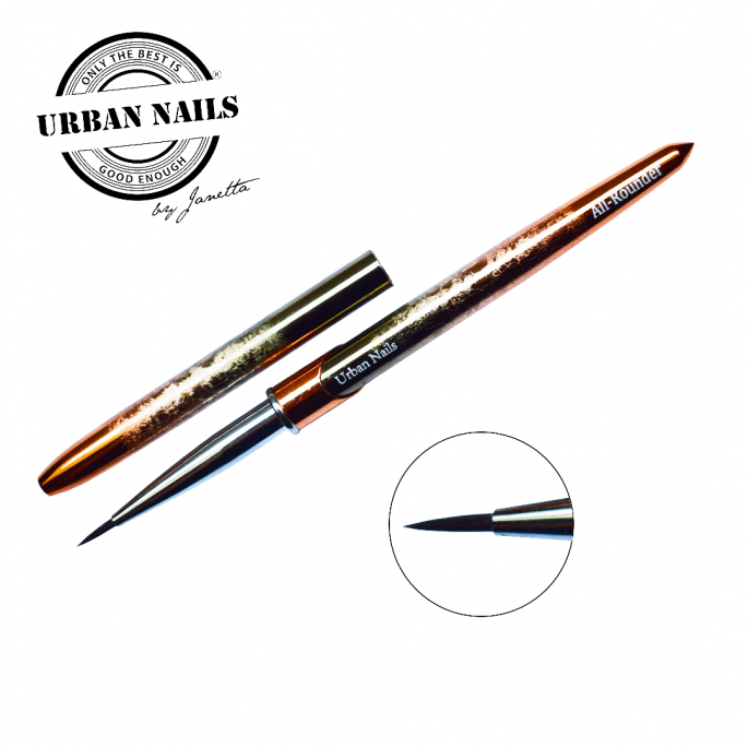 De naam zegt het al... Een échte all-rounder. Dit penseel is te gebruiken voor zowel paint als gel. Je kunt er mee schilderen, designen, je gelpolish mee corrigeren en zelfs je BIAB, rubber en goudgel bij de nagelriemen perfectioneren. Het penseel is voorzien van een dop zodat het altijd mooi blijft. In de kleur rosegold.
