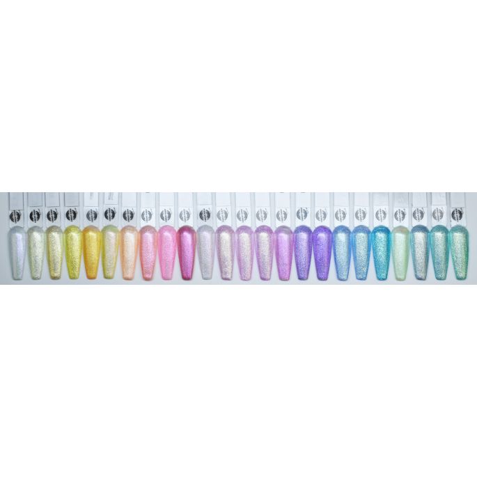 De prachtige enchanted gelpolish kleuren zijn op iedere ondergrond anders. Bijvoorbeeld op zwart of wit maar probeer ook eens andere mooie combinaties uit voor een verrassend effect. Op de afbeelding zie je deze kleur op een lichte ondergrond.