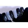 - Doe een beetje stempellak op de plaat, pak de print op met het stempelkussen en druk af waar je hem wilt hebben op de reflective gellak. Zoals je ziet, geeft hij een heel leuk zwart effect over de glitters. De stempel lak zal vrijwel meteen droog zijn;