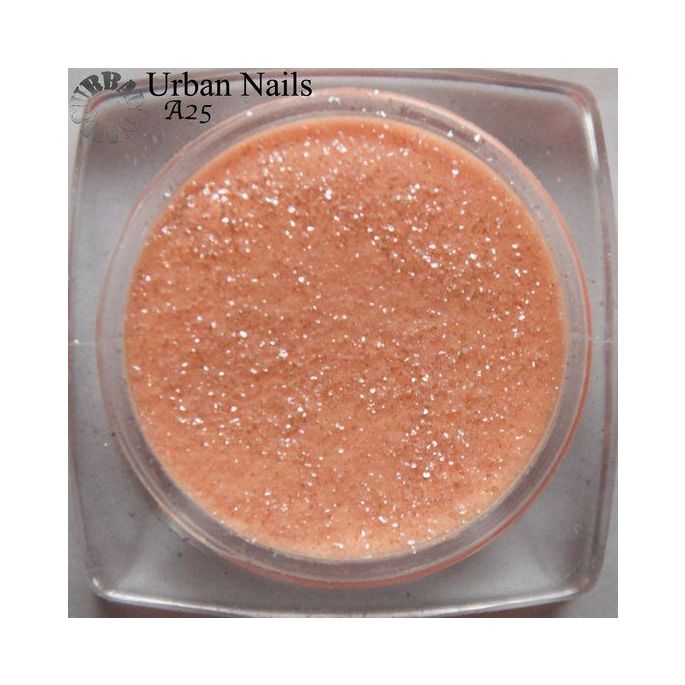 De coloracryl A25 in de kleur pastel orange van Urban Nails is hooggepigmenteerd en is gemakkelijk om aan te brengen. Met dit product kun je een mooie glitterfading of color french maken maar met deze poeder is het ook mogelijk om sugar effect te maken. Dit product zit verpakt in een mooie diamantvormige verpakking en bevat 5gr.Â