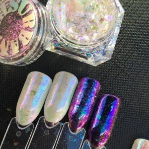 De flakes kunnen op dezelfde manier verwerkt worden als de gewone Pure Pigments van Urban Nails.