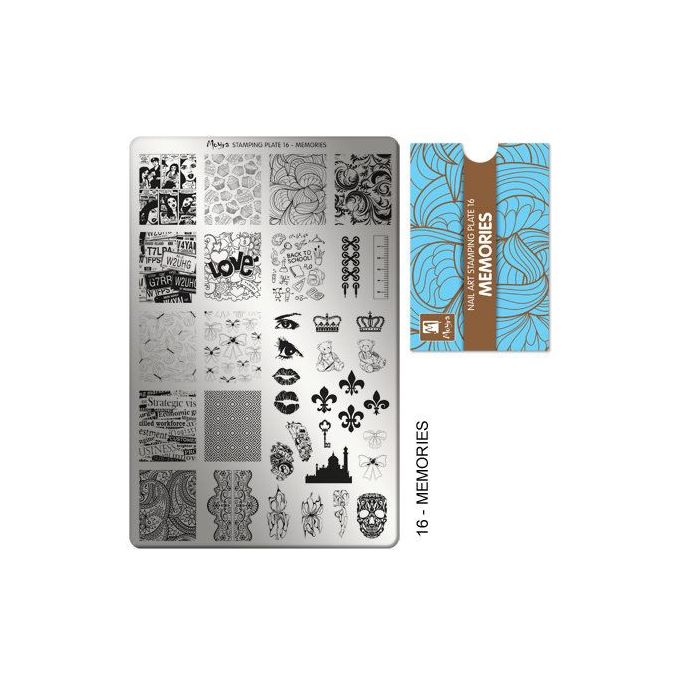 De Stamping Plate 16 Memories van Moyra is van de beste kwaliteit en geschikt voor leuke nailart op zowel de natuurlijke als de kunstnagel. Deze stempelplaat kan worden gebruikt met stempelgel, stempellak, pigmenten en pastagel. De stempelplaat bevat diverse printen die oneindig kunnen worden gebruikt.