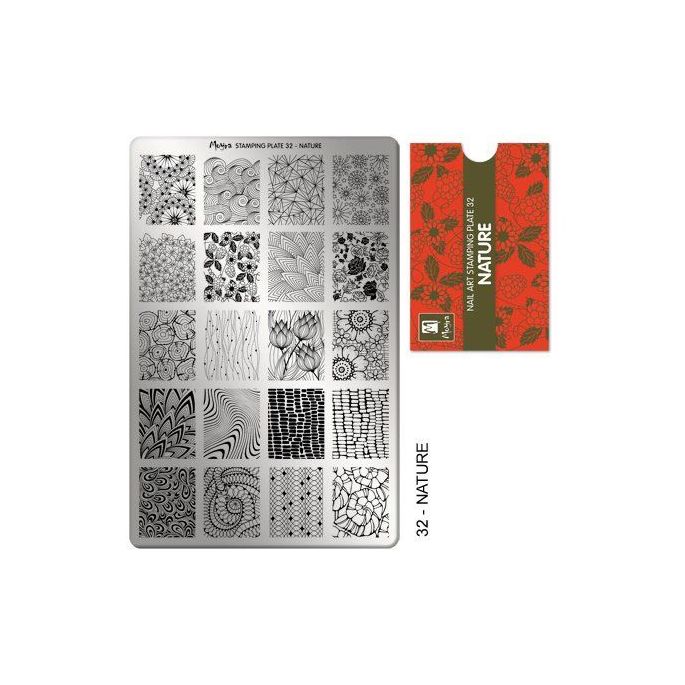 De Stamping Plate 32 Nature van Moyra is van de beste kwaliteit en geschikt voor leuke nailart op zowel de natuurlijke als de kunstnagel. Deze stempelplaat kan worden gebruikt met stempelgel, stempellak, pigmenten en pastagel. De stempelplaat bevat diverse printen die oneindig kunnen worden gebruikt.