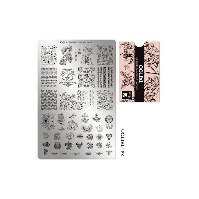 De Stamping Plate 34 Tattoo van Moyra is van de beste kwaliteit en geschikt voor leuke nailart op zowel de natuurlijke als de kunstnagel. Deze stempelplaat kan worden gebruikt met stempelgel, stempellak, pigmenten en pastagel. De stempelplaat bevat diverse printen die oneindig kunnen worden gebruikt.