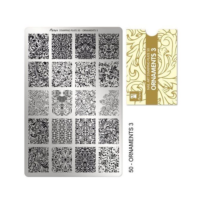 De Stamping Plate 50 Ornaments 3 van Moyra is van de beste kwaliteit en geschikt voor leuke nailart op zowel de natuurlijke als de kunstnagel. Deze stempelplaat kan worden gebruikt met stempelgel, stempellak, pigmenten en pastagel. De stempelplaat bevat diverse printen die oneindig kunnen worden gebruikt.