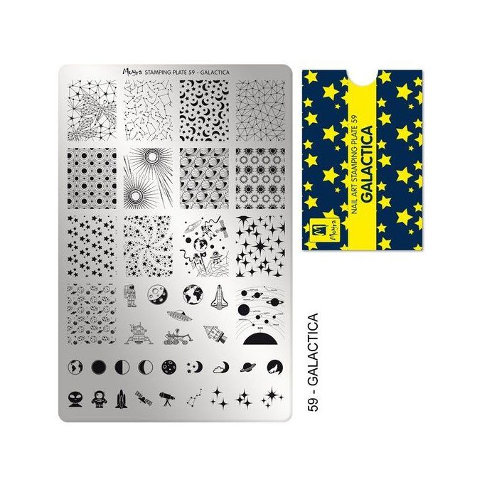 De Stamping Plate 59 Galactica van Moyra is van de beste kwaliteit en geschikt voor leuke nailart op zowel de natuurlijke als de kunstnagel. Deze stempelplaat kan worden gebruikt met stempelgel, stempellak, pigmenten en pastagel. De stempelplaat bevat diverse printen die oneindig kunnen worden gebruikt.