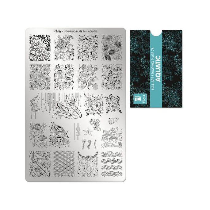 De Stamping Plate 78 Aquatic van Moyra is van de beste kwaliteit en geschikt voor leuke nailart op zowel de natuurlijke als de kunstnagel. Deze stempelplaat kan worden gebruikt met stempelgel, stempellak, pigmenten en pastagel. De stempelplaat bevat diverse printen die oneindig kunnen worden gebruikt.
