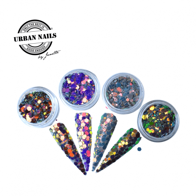 De Urban Nails Glitter is van supieure kwaliteit. Je kunt de glitters op iedere gewenste manier verwerken.